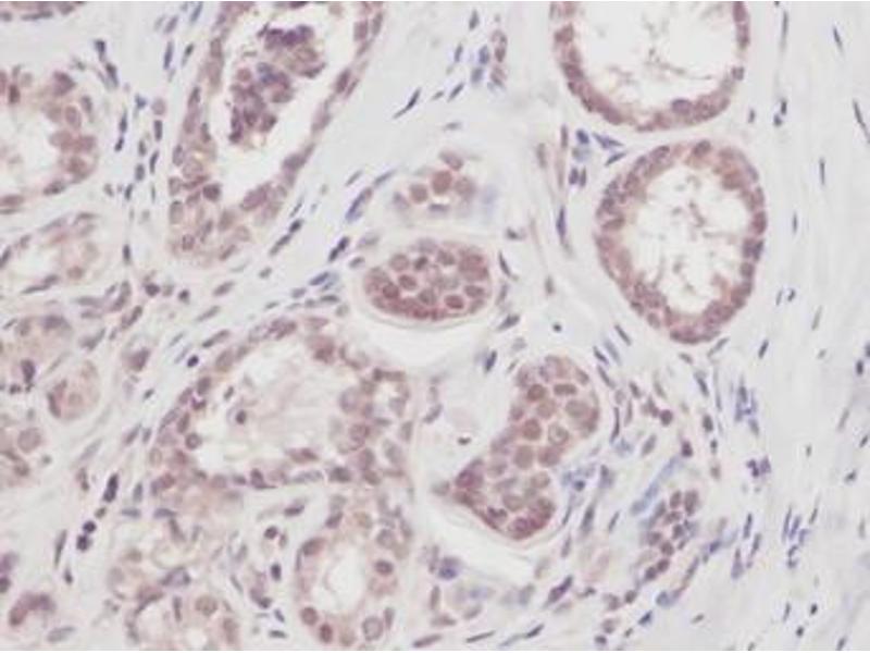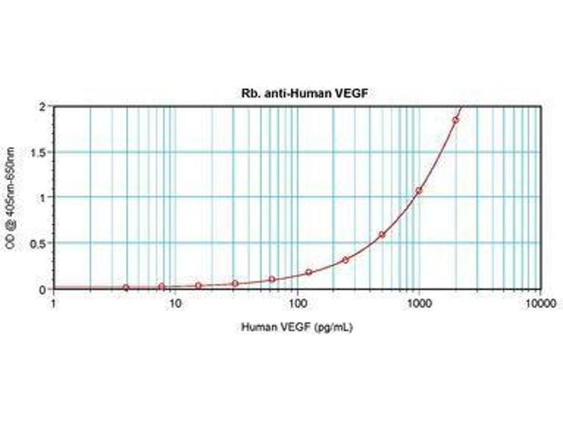 Usage: Immunohistochemistry: This antibody stained formalin-fixed, paraffin-embedded sections of Human breast invasive ductal carcinoma. The recommended concentrations are 2.5-5.5 mg/mL with an overnight incubation at 4 °C. An HRP-labeled polymer detection system was used with a DAB chromogen. Heat induced antigen retrieval with a pH 6 Sodium Citrate buffer is recommended. Optimal concentrations and conditions may vary. Neutralization: To yield one-half maximal inhibition [ND] of the biological activity of hVEGF (10 ng/mL), a concentration of 0.05-0.1 μg/mL of this antibody is required. ELISA: To detect hVEGF by sandwich ELISA (using 100 μL/well antibody solution) a concentration of 0.5-2 μg/mL of this antibody is required. This antigen affinity purified antibody, in conjunction with Biotinylated Anti-Human VEGF (LS-C104615) as a detection antibody, allows the detection of at least 0.2-0.4 ng/well of recombinant hVEGF. Western Blot: To detect hVEGF by Western Blot analysis this antibody can be used at a concentration of 0.1-0.2 μg/mL. Used in conjunction with compatible secondary reagents the detection limit for recombinant hVEGF is 1.5-3 ng/lane, under either reducing or non-reducing conditions. -