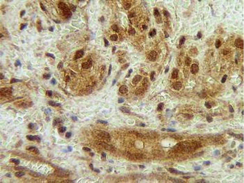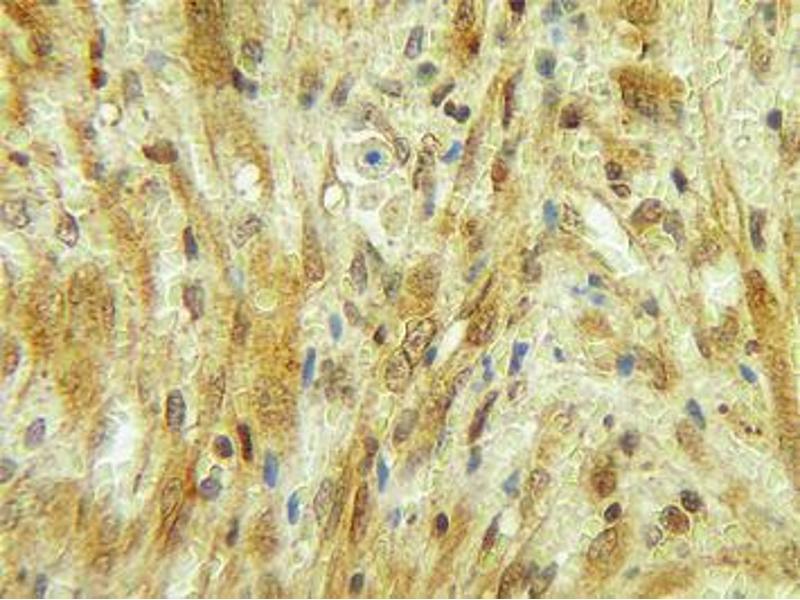 Usage: Immunohistochemistry: This antibody stained formalin-fixed, paraffin-embedded sections of human angiosarcoma. The recommended concentration is 0.25 μg/mL with an overnight incubation at 4 °C. An HRP-labeled polymer detection system was used with a DAB chromogen. Heat induced antigen retrieval with a pH 6 sodium citrate buffer is recommended. Optimal concentrations and conditions may vary. Neutralization: To yield one-half maximal inhibition [ND] of the biological activity of hG-CSF (0.5 ng/mL), a concentration of 0.04-0.06 μg/mL of this antibody is required. ELISA: To detect hG-CSF by sandwich ELISA (using 100 μL/well antibody solution) a concentration of 0.5-2 μg/mL of this antibody is required. This antigen affinity purified antibody, in conjunction with Biotinylated Anti-Human G-CSF (LS-C104674) as a detection antibody, allows the detection of at least 0.2-0.4 ng/well of recombinant hG-CSF. Western Blot: To detect hG-CSF by Western Blot analysis this antibody can be used at a concentration of 0.1-0.2 μg/mL. Used in conjunction with compatible secondary reagents the detection limit for recombinant hG-CSF is 1.5-3 ng/lane, under either reducing or non-reducing conditions. -