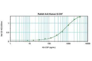 Usage: Immunohistochemistry: This antibody stained formalin-fixed, paraffin-embedded sections of human angiosarcoma. The recommended concentration is 0.25 μg/mL with an overnight incubation at 4 °C. An HRP-labeled polymer detection system was used with a DAB chromogen. Heat induced antigen retrieval with a  pH 6 sodium citrate buffer is recommended. Optimal concentrations and conditions may vary. Neutralization: To yield one-half maximal inhibition [ND] of the biological activity of hG-CSF (0.5 ng/mL), a concentration of 0.04-0.06 μg/mL of this antibody is required. ELISA: To detect hG-CSF by sandwich ELISA (using 100 μL/well antibody solution) a concentration of 0.5-2 μg/mL of this antibody is required. This antigen affinity purified antibody, in conjunction with Biotinylated Anti-Human G-CSF (LS-C104674) as a detection antibody, allows the detection of at least 0.2-0.4 ng/well of recombinant hG-CSF. Western Blot: To detect hG-CSF by Western Blot analysis this antibody can be used at a concentration of 0.1-0.2 μg/mL. Used in conjunction with compatible secondary reagents the detection limit for recombinant hG-CSF is 1.5-3 ng/lane, under either reducing or non-reducing conditions.