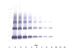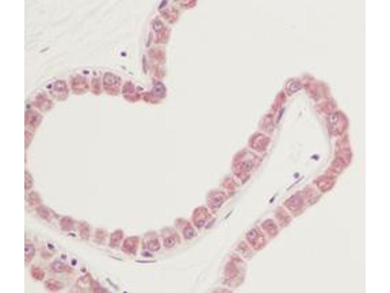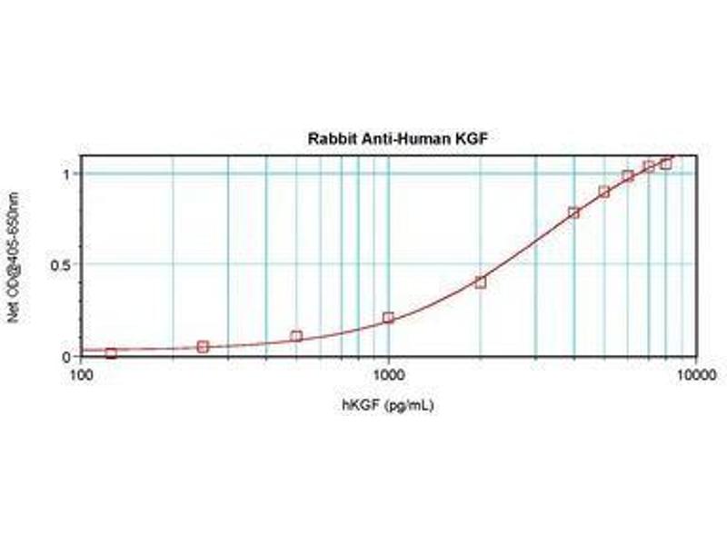 Usage: Immunohistochemistry: This antibody stained formalin-fixed, paraffin-embedded sections of normal human skin. The recommended concentration is 0.5 μg/mL overnight at 4 °C. An HRP-labeled polymer detection system was used with a non-alcohol soluble AEC chromogen and a proteinase K antigen retrieval. Optimal concentrations and conditions may vary. Neutralization: To yield one-half maximal inhibition [ND]of the biological activity of hKGF (25 ng/mL), a concentration of 0.56-0.85 μg/mL of this antibody is required. ELISA: To detect hKGF by sandwich ELISA (using 100 μL/well antibody solution) a concentration of 0.5-2 μg/mL of this antibody is required. This antigen affinity purified antibody, in conjunction with Biotinylated Anti-Human KGF (LS-C104287) as a detection antibody, allows the detection of at least 0.2-0.4 ng/well of recombinant hKGF. Western Blot: To detect hKGF by Western Blot analysis this antibody can be used at a concentration of 0.1-0.2 μg/mL. Used in conjunction with compatible secondary reagents the detection limit for recombinant hKGF is 1.5-3 ng/lane, under either reducing or non-reducing conditions. -