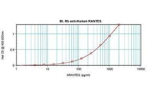 Usage: The applications listed have been tested for the unconjugated form of this product. Other forms have not been tested. ELISA: To detect hRANTES by direct ELISA (using 100 μL/well antibody solution) a concentration of 0.25-1 μg/mL of this antibody is required. This biotinylated polyclonal antibody, in conjunction with compatible secondary reagents, allows the detection of at least 0.2-0.4 ng/well of recombinant hRANTES. To detect hRANTES by sandwich ELISA (using 100 μL/well antibody solution) a concentration of 0.25-1 μg/mL of this antibody is required. This biotinylated polyclonal antibody, in conjunction with Polyclonal Anti-Human RANTES (LS-C104721) as a capture antibody, allows the detection of at least 0.2-0.4 ng/well of recombinant hRANTES. Western Blot: To detect hRANTES by Western Blot analysis this antibody can be used at a concentration of 0.1-0.2 μg/mL. Used in conjunction with compatible secondary reagents the detection limit for recombinant hRANTES is 1.5-3 ng/lane, under either reducing or non-reducing conditions. -