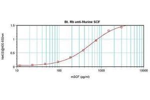 Usage: The applications listed have been tested for the unconjugated form of this product. Other forms have not been tested. ELISA: To detect mSCF by direct ELISA (using 100 μL/well antibody solution) a concentration of 0.25-1 μg/mL of this antibody is required. This biotinylated polyclonal antibody, in conjunction with compatible secondary reagents, allows the detection of at least 0.2-0.4 ng/well of recombinant mSCF. To detect mSCF by sandwich ELISA (using 100 μL/well antibody solution) a concentration of 0.25-1 μg/mL of this antibody is required. This biotinylated polyclonal antibody, in conjunction with Polyclonal Anti-Murine SCF (LS-C104783) as a capture antibody, allows the detection of at least 0.2-0.4 ng/well of recombinant mSCF. Western Blot: To detect mSCF by Western Blot analysis this antibody can be used at a concentration of 0.1-0.2 μg/mL. Used in conjunction with compatible secondary reagents the detection limit for recombinant mSCF is 1.5-3 ng/lane, under either reducing or non-reducing conditions. -