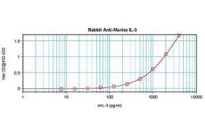 Usage: Neutralization: To yield one-half maximal inhibition [ND] of the biological activity of mIL-3 (0.5 ng/mL), a concentration of 0.15-0.20 μg/mL of this antibody is required. ELISA: To detect mIL-3 by sandwich ELISA (using 100 μL/well antibody solution) a concentration of 0.5-2 μg/mL of this antibody is required. This antigen affinity purified antibody, in conjunction with Biotinylated Anti-Murine IL-3 (LS-C104814) as a detection antibody, allows the detection of at least 0.2-0.4 ng/well of recombinant mIL-3. Western Blot: To detect mIL-3 by Western Blot analysis this antibody can be used at a concentration of 0.1-0.2 μg/mL. Used in conjunction with compatible secondary reagents the detection limit for recombinant mIL-3 is 1.5-3 ng/lane, under either reducing or non-reducing conditions. -