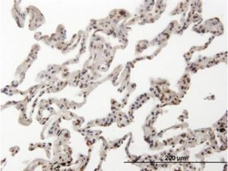 Usage: Immunohistochemistry (Formalin/PFA-fixed paraffin-embedded sections, 3 μg/mL) - positive control human lung.