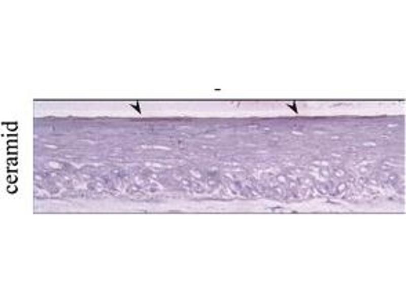 Recognizes C16- and C24-ceramide, dihydroceramide, sphingomyelin and phosphatidylcholine in highly artificial lipid overlay test systems. Under more physiological in vitro and in vivo conditions highly specific for ceramide and does not cross-react with sphingomyelin, cholesterol or other phospholipids.