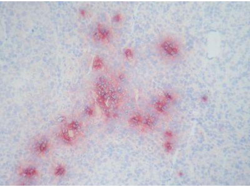 Several defensins are recognized, the epitope has not been further characterized. Biological functions: Various functions have been described for defensins. They are antibacterial, antifungal, chemotactic for monocytes, inhibitory for ACTH-induced corticosteroid synthesis and cytotoxic for cells. Defensins are inhibited by glucosaminoglycans (self protection for cells) and high concentrations of Calpha 2+ ions. Biochemistry: Defensins are a group of cyclic peptides containing 29-35 amino acids (MW < 3500) which tend to form aggregates. The molecules are protease resistant. The defensin content of azurophilic granules in neutrophils is approximately 30 % of the total protein. Specificity: Human: Defensin 1-3 (HNP-1 to HNP-3) in human neutrophils. Synthetic defensin-1 and -2 (Bachem, Bubendorf CH) stain also positively. Not tested with Defensin-4. A side reaction to elastin has been observed in humans. Other: not tested. Defensins have been described in rabbits (NP-1 to NP-5, NP3a = Corticostatin), and in mice (cryptodin).