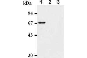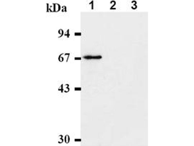 Western Blot: 0.2 μg/mL. Positive Control: HeLa. Immunoprecipitation: 3 μg/200-300 μL of cell extract. Positive Control: HeLa. Immunohistochemistry: 1-5 μg/mLHeat treatment is necessary for Paraffin Embedded Sections. Microwave oven: 2 times for 10 minutes each in citrate buffer ( pH 6.5). Positive Control: Tonsil Tissue. Detailed procedure is provided in Protocols. Other applications not tested. Optimal dilutions are dependent on conditions and should be determined by the user.