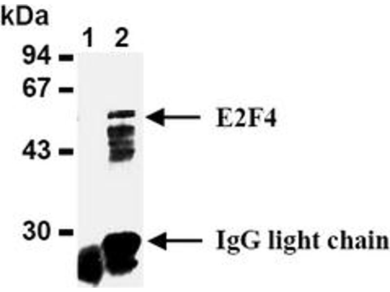 - This antibody reacts with Human, Mouse and Rat E2F4 on Western blotting and Immunoprecipitation.