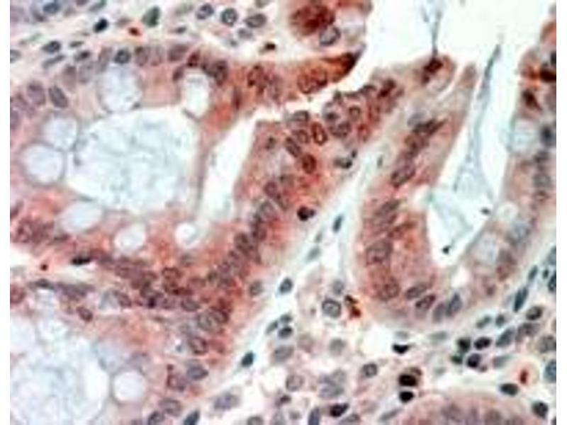 Peptide ELISA: 1/128000. Immunohistochemistry on paraffin sections: Human Colon shows textured staning ofcytoplasm in enterocytes. Recommended concentration: 2 - 4 μg/mL. Other applications not tested. Optimal dilutions are dependent on conditions and should be determined by the user.