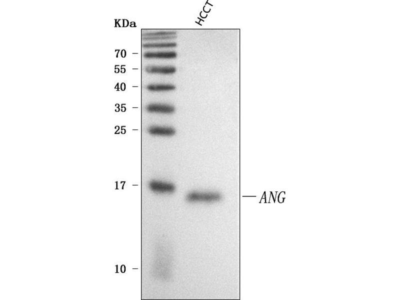 Background: Angiogenin (Ang), also known as ribonuclease 5, is a small 123 amino acid protein that in humans is encoded by the ANG gene. The protein encoded by this gene is an exceedingly potent mediator of new blood vessel formation. It hydrolyzes cellular tRNAs resulting in decreased protein synthesis and is similar to pancreatic ribonuclease. In addition, the mature peptide has antimicrobial activity against some bacteria and fungi, including S. pneumoniae and C. albicans. Alternative splicing results in two transcript variants encoding the same protein. This gene and the gene that encodes ribonuclease, RNase A family, 4 share promoters and 5' exons. Each gene splices to a unique downstream exon that contains its complete coding region.