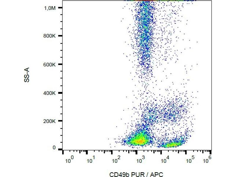 The mouse monoclonal antibody AK7 recognizes an extracellular epitope of CD49b, a 160-165 kDa alpha subunit of VLA-2 integrin complex expressed on platelets, megakaryocytes, activated T and B cells, monocytes, epithelial cells, endothelial cells and fibroblasts.