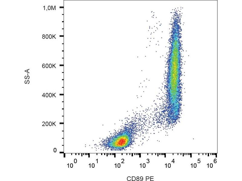 The mouse monoclonal antibody A59 recognizes an extracellular epitope of CD89, a 55-100 kDa glycoprotein serving as a receptor for IgA and expressed mainly on granulocytes, monocytes and macrophages.