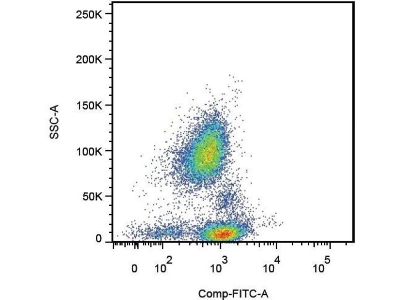 Flow cytometry: The reagent is designed for analysis of human blood cells using 20 μL reagent / 100 μL of whole blood or 106 cells in a suspension. The content of a vial (2 ml) is sufficient for 100 tests.