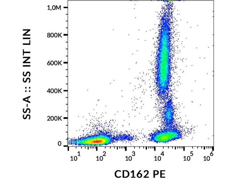 Selectin P ligand,CD162 (P-selectin glycoprotein ligand-1, PSGL-1) is a sialomucin constitutively expressed as a disulfide-linked homodimer of two 120 kDa subunits on the surface of circulating leukocytes. CD162 serves as a ligand for P- E- and L-selectin, with the highest affinity for P-selectin. It is thus involved in leukocyte rolling at the endothelial surfaces, prerequisite for firm leukocyte adhesion and subsequent transendothelial migration. CD162 also mediates leukocyte-platelet adhesion and interleukocyte contacts. Whereas serving as an adhession molecule on mature leukocytes, CD162 is a potent negative regulator of human hematopoietic progenitors.,PSGL-1, Selectin P ligand, SELPLG, CLA