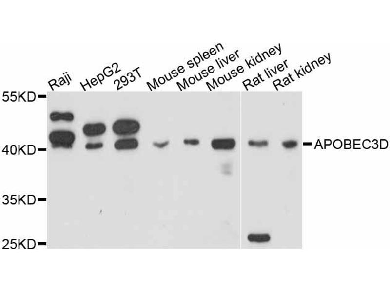 Der Kaninchen Polyklonal Anti-APOBEC3D Antikörper wurde für WB validiert. Er ist geeignet, APOBEC3D in Proben von Human und Maus zu detektieren.