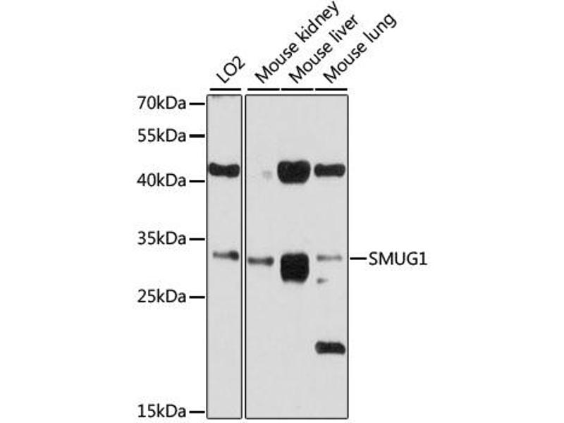 Der Kaninchen Polyklonal Anti-SMUG1 Antikörper wurde für WB validiert. Er ist geeignet, SMUG1 in Proben von Human, Maus und Ratte zu detektieren.