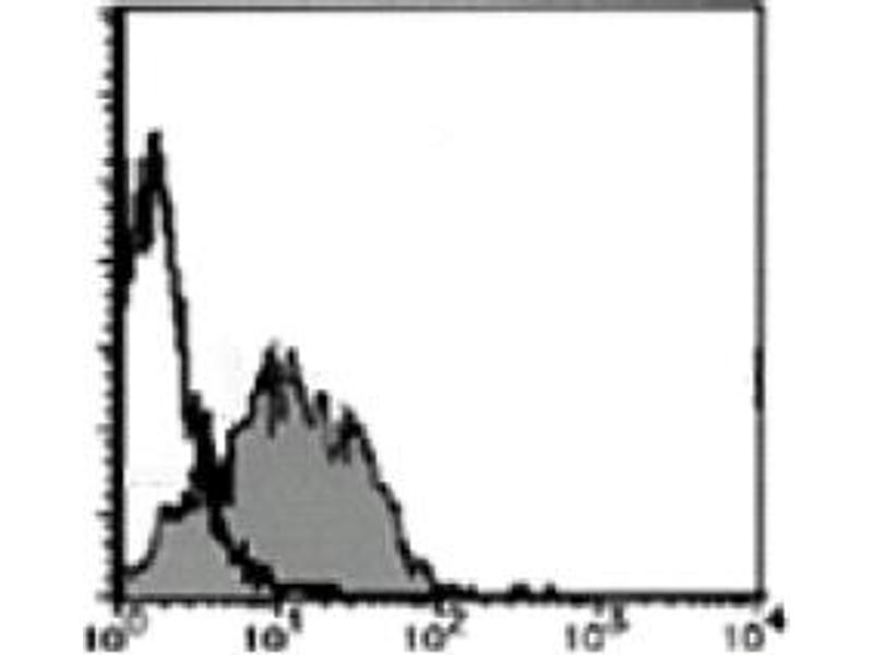 Flow Cytometric analysis for for floating cellsWe usually use Fisher tubes or equivalents as reaction tubes for all steps described below. 1) Detach the cells from culture dish by using cell dissociation buffer2) Wash the cells 3 times with washing buffer [PBS containing 2% fetal calf serum (FCS)and 0. 1% NaN]. 3) Resuspend the cells with washing buffer (5x10e6 cells/mL). 4) Add 50 µL of the cell suspension into each tube, and centrifuge at 500 x g for 1 minute atroom temperature (20~25°C). Remove supernatant by careful aspiration. 5) Add 20 µL of normal goat serum containing 1 mg/mL normal human IgG and 0. 1% NaN3or 20 µL of Clear Back (human Fc receptor blocking reagent) to the cell pellet after tapping. Mix well and incubate for 5 minutes at room temperature. 6) Add 30 µL of the primary antibody at the concentration of as suggest in theAPPLICATIONS diluted in the washing buffer. Mix well and incubate for 30 minutes at roomtemperature. 7) Add 1 mL of the washing buffer followed by centrifugation at 500 x g for 1 minute at roomtemperature. Remove supernatant by careful aspiration. 8) Add 30 µL of 1: 100 FITC conjugated anti-mouse IgG diluted with the washing buffer. Mixwell and incubate for 15 minutes at room temperature. 9) Add 1 mL of the washing buffer followed by centrifugation at 500 x g for 1 minute at roomtemperature. Remove supernatant by careful aspiration. 10) Resuspend the cells with 500 µL of the washing buffer and analyze by a flow cytometer. Positive Control: LNCaP