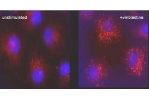 This antibody specifically recognizes both forms of endogenous LC3, the cytoplasmic LC3-I (18 kDa) as well as the lipidated form generated during autophagosome and autophagolysosome formation: LC3-II (16 kDa). Immunocytochemical staining of cells with LC3 antibody Cat.-No AM20212PU-N (Clone 5F10) reveals the specific punctate distribution of endogenous LC3-II as a hallmark of autophagic activity.