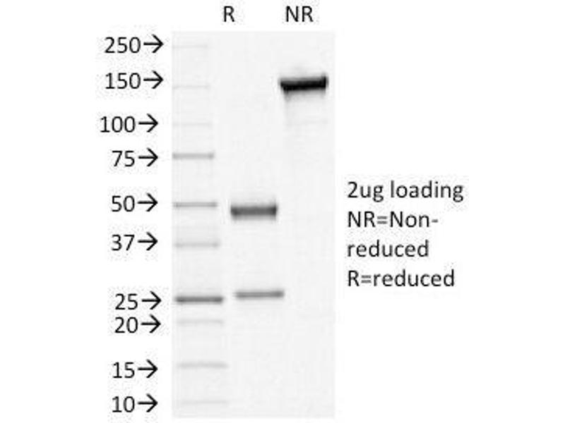 Recognizes a protein of 130 kDa, identified as Desmoglein-3 (DSG3). This MAb is highly specific to Desmoglein-3 and does not cross-react with other members of the Desmoglein-family. DSG3 is a calcium-binding transmembrane glycoprotein component of desmosomes in vertebrate epithelial cells. Desmosomes are cell-cell junctions between epithelial, myocardial, and certain other cell types. Currently, three desmoglein subfamily members are identified and all are members of the cadherin cell adhesion molecule superfamily.