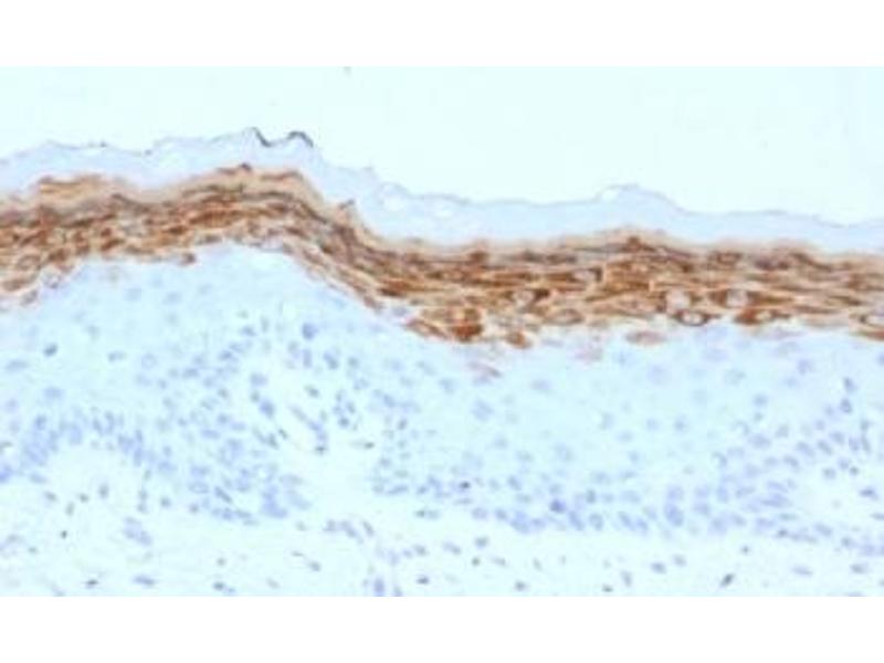Der Maus Monoklonal anti-Filaggrin Antikörper (Klon FLG-1561) (ABIN4949675) detektiert spezifisch Filaggrin in IF, FACS und IHC (p).