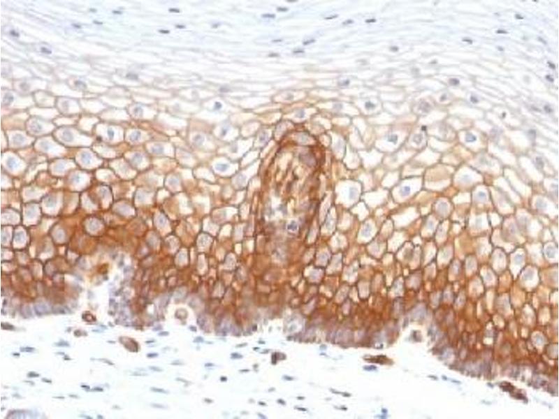 It recognizes a protein of 75 kDa, identified as Thrombomodulin. Thrombomodulin is a transmembrane glycoprotein with natural anticoagulant properties. It is normally expressed by a restricted number of cells, such as endothelial and mesothelial cells. In addition, synovial lining and syncytio-trophoblasts of placenta also express thrombomodulin. This protein is present in almost all of benign vascular tumors and majority of malignant vascular tumors (Kaposi s sarcoma, angiosarcoma, and epithelioid hemangioendothelioma). Hence, anti-thrombomodulin serves as a sensitive marker for lymphatic endothelial cells and their tumors. Recently, thrombomodulin antibody has been used for mesothelial cells and malignant mesotheliomas.