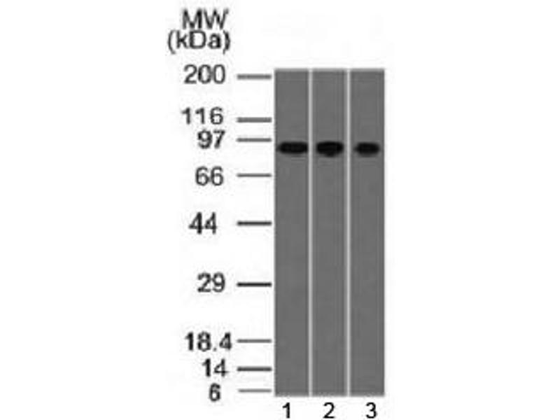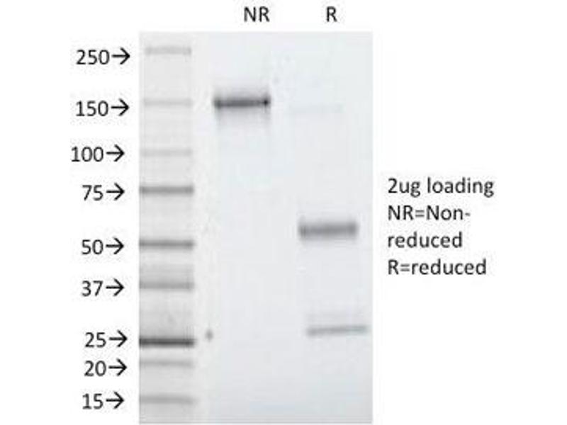 Recognizes a protein of ~93 kDa which is identified as Villin (VIL1). It is a major constituent in the microvilli, which compose the brush border of epithelial cells forming absorptive surfaces of the intestinal and renal proximal tubular epithelia. Anti-Villin labels the brush border area in the gastrointestinal mucosal epithelium and urogenital tract. Among neoplasms, Villin is predominantly expressed in tumors of colorectal origin. Antibody to Villin is useful in identifying malignant cells from primary and metastatic colorectal carcinomas. This antibody also labels Merkel cells of the skin.