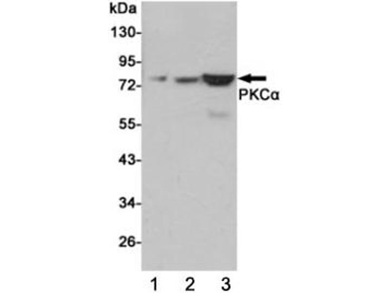 - The stated application concentrations are suggested starting points. Titration of the PKC alpha antibody may be required due to differences in protocols and secondary/substrate sensitivity.\. Western blot: 1:1000
