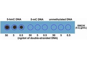 1. A pH 6 Citrate buffer or pH 9 Tris/EDTA buffer HIER step is recommended for testing of FFPE tissue sections.\. Dot Blot: 0.2-1 μg/mL,ELISA: 0.1-1 μg/mL,Immunohistochemistry: 0.1-1 μg/mL (1),Immunocytochemistry: 0.5-2 μg/mL,hMeDIP: 0.2 μg/mL- 2 μg/mL