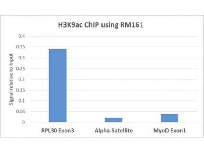 The stated application concentrations are suggested starting points. Titration of the recombinant H3K9ac antibody may be required due to differences in protocols and secondary/substrate sensitivity.