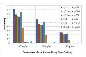 - This recombinant Mouse IgG antibody reacts to Mouse IgG, including IgG1, IgG2a, IgG2b, and IgG3. No cross reactivity with IgM, IgA, IgE or human/rat/rabbit IgG.