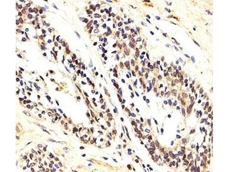 - AKT1 is one of 3 closely related serine/threonine- protein kinases (AKT1, AKT2 and AKT3) called the AKT kinase, and which regulate many processes including metabolism, proliferation, cell survival, growth and angiogenesis. This is mediated through serine and/or threonine phosphorylation of a range of downstream substrates. Over 100 substrate candidates have been reported so far, but for most of them, no isoform specificity has been reported. AKT is responsible of the regulation of glucose uptake by mediating insulin-induced translocation of the SLC2A4/GLUT4 glucose transporter to the cell surface. Phosphorylation of PTPN1 at 'Ser-50' negatively modulates its phosphatase activity preventing dephosphorylation of the insulin receptor and the attenuation of insulin signaling. Phosphorylation of TBC1D4 triggers the binding of this effector to inhibitory 14-3-3 proteins, which is required for insulin-stimulated glucose transport. AKT regulates also the storage of glucose in the form of glycogen by phosphorylating GSK3A at 'Ser-21' and GSK3B at 'Ser-9', resulting in inhibition of its kinase activity. Phosphorylation of GSK3 isoforms by AKT is also thought to be one mechanism by which cell proliferation is driven. AKT regulates also cell survival via the phosphorylation of MAP3K5 (apoptosis signal-related kinase). Phosphorylation of 'Ser-83' decreases MAP3K5 kinase activity stimulated by oxidative stress and thereby prevents apoptosis. AKT mediates insulin-stimulated protein synthesis by phosphorylating TSC2 at 'Ser-939' and 'Thr-1462', thereby activating mTORC1 signaling and leading to both phosphorylation of 4E-BP1 and in activation of RPS6KB1. AKT is involved in the phosphorylation of members of the FOXO factors (Forkhead family of transcription factors), leading to binding of 14-3-3 proteins and cytoplasmic localization. In particular, FOXO1 is phosphorylated at 'Thr-24', 'Ser-256' and 'Ser-319'. FOXO3 and FOXO4 are phosphorylated on equivalent sites. AKT has an important role in the regulation of NF-kappa-B-dependent gene transcription and positively regulates the activity of CREB1 (cyclic AMP (cAMP)- response element binding protein). The phosphorylation of CREB1 induces the binding of accessory proteins that are necessary for the transcription of pro-survival genes such as BCL2 and MCL1. AKT phosphorylates 'Ser-454' on ATP citrate lyase (ACLY), thereby potentially regulating ACLY activity and fatty acid synthesis. Activates the 3B isoform of cyclic nucleotide phosphodiesterase (PDE3B) via phosphorylation of 'Ser-273', resulting in reduced cyclic AMP levels and inhibition of lipolysis. Phosphorylates PIKFYVE on 'Ser-318', which results in increased PI(3)P-5 activity. The Rho GTPase-activating protein DLC1 is another substrate and its phosphorylation is implicated in the regulation cell proliferation and cell growth. AKT plays a role as key modulator of the AKT-mTOR signaling pathway controlling the tempo of the process of newborn neurons integration during adult neurogenesis, including correct neuron positioning, dendritic development and synapse formation. Signals downstream of phosphatidylinositol 3-kinase (PI(3)K) to mediate the effects of various growth factors such as platelet-derived growth factor (PDGF), epidermal growth factor (EGF), insulin and insulin-like growth factor I (IGF-I). AKT mediates the antiapoptotic effects of IGF-I. Essential for the SPATA13-mediated regulation of cell migration and adhesion assembly and disassembly. May be involved in the regulation of the placental development. Phosphorylates STK4/MST1 at 'Thr-120' and 'Thr-387' leading to inhibition of its: kinase activity, nuclear translocation, autophosphorylation and ability to phosphorylate FOXO3. Phosphorylates STK3/MST2 at 'Thr- 117' and 'Thr-384' leading to inhibition of its: cleavage, kinase activity, autophosphorylation at Thr-180, binding to RASSF1 and nuclear translocation. Phosphorylates SRPK2 and enhances its kinase activity towards SRSF2 and ACIN1 and promotes its nuclear translocation. Phosphorylates RAF1 at 'Ser-259' and negatively regulates its activity. Phosphorylation of BAD stimulates its pro- apoptotic activity. Phosphorylates KAT6A at 'Thr-369' and this phosphorylation inhibits the interaction of KAT6A with PML and negatively regulates its acetylation activity towards p53/TP53.
