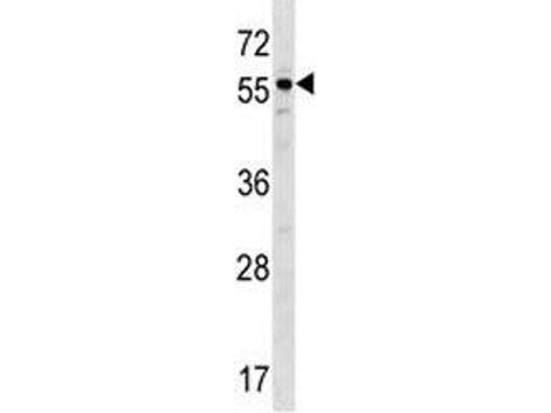 A portion of amino acids 318-347 from the human protein was used as the immunogen for this BMP3 antibody.