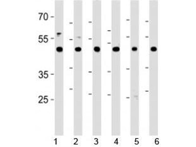 A portion of amino acids 413-440 from the human protein was used as the immunogen for this CTBP1 antibody.