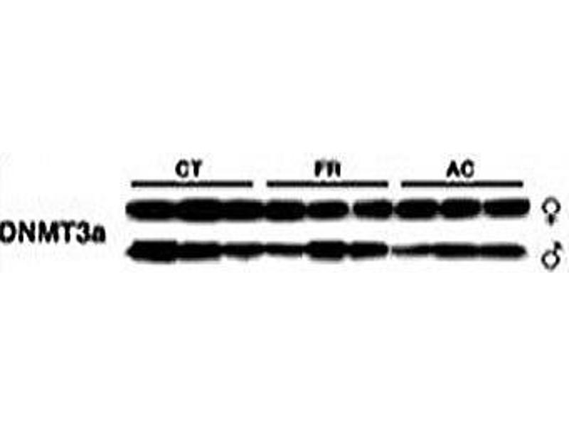 Titration of the Dnmt3a antibody may be required due to differences in protocols and secondary/substrate sensitivity.\. Western blot: 1:1000,IHC (Paraffin): 1:50-1:100
