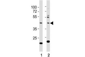 Titration of the E2F1 antibody may be required due to differences in protocols and secondary/substrate sensitivity.\. Western blot: 1:1000