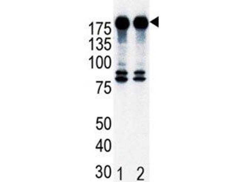 - Titration of the ErbB2 antibody may be required due to differences in protocols and secondary/substrate sensitivity.\. Western blot: 1:1000,Flow Cytometry: 1:10-1:50,IHC (Paraffin): 1:50-1:100