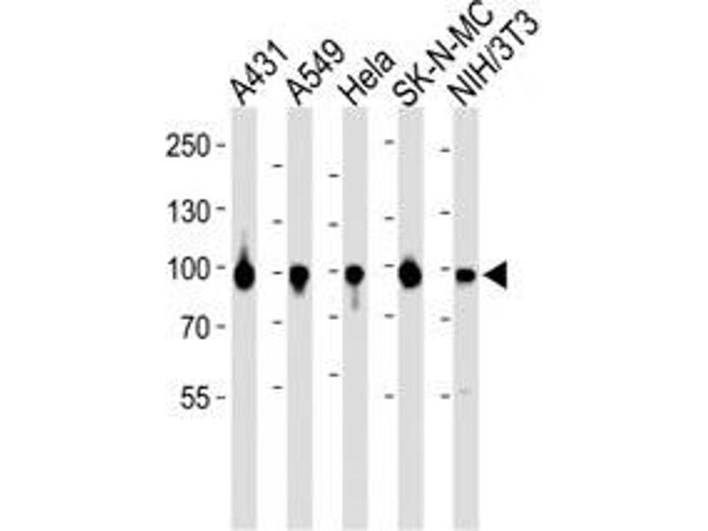 Titration of the HSP90 antibody may be required due to differences in protocols and secondary/substrate sensitivity.\. Western blot: 1:1000