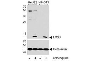 Titration of the LC3B antibody may be required due to differences in protocols and secondary/substrate sensitivity.\. Western blot: 1:1000,Immunofluorescence: 1:25