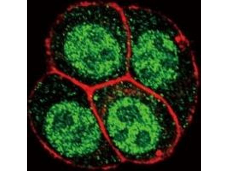 Titration of the phospho-SMAD2 antibody may be required due to differences in protocols and secondary/substrate sensitivity.\. Immunofluorescence: 1:10-1:50,Dot blot: 1:500