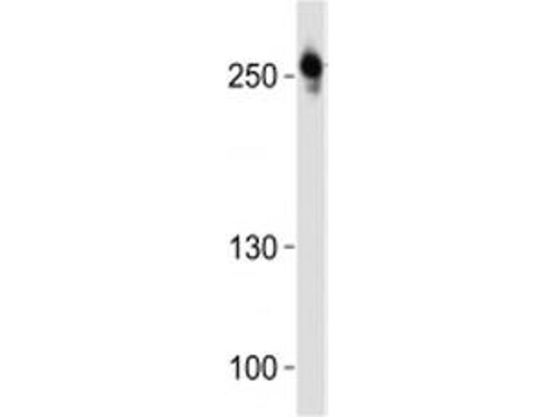 This ROS1 antibody was produced from a rabbit immunized with a KLH conjugated synthetic peptide between 1744-1777 amino acids from the C-terminal region of human ROS1.