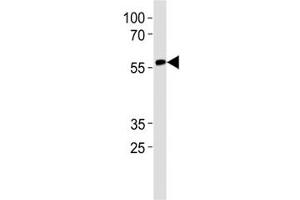 RUNX2 is a transcription factor involved in osteoblastic differentiation and skeletal morphogenesis. Essential for the maturation of osteoblasts and both intramembranous and endochondral ossification. CBF binds to the core site, 5'-PYGPYGGT-3', of a number of enhancers and promoters, including murine leukemia virus, polyomavirus enhancer, T-cell receptor enhancers, osteocalcin, osteopontin, bone sialoprotein, alpha 1(I) collagen, LCK, IL-3 and GM-CSF promoters. In osteoblasts, supports transcription activation: synergizes with SPEN/MINT to enhance FGFR2-mediated activation of the osteocalcin FGF-responsive element (OCFRE) (By similarity). Inhibits KAT6B-dependent transcriptional activation. [UniProt]