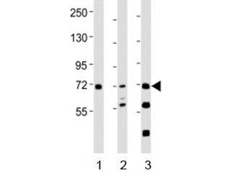 Titration of the SYK antibody may be required due to differences in protocols and secondary/substrate sensitivity.\. Western blot: 1:1000-2000