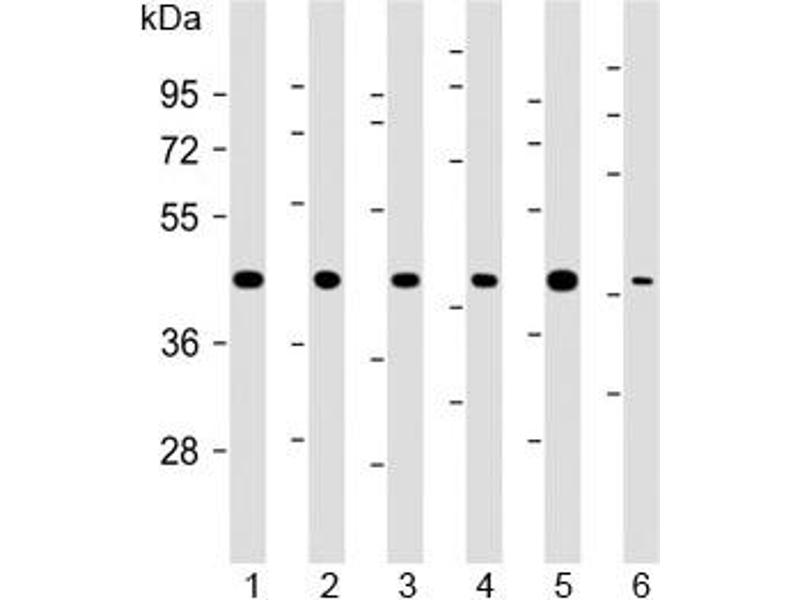 Dieser Antikörper reagiert spezifisch mit Proben aus Human, Maus, Ratte und Affe.
