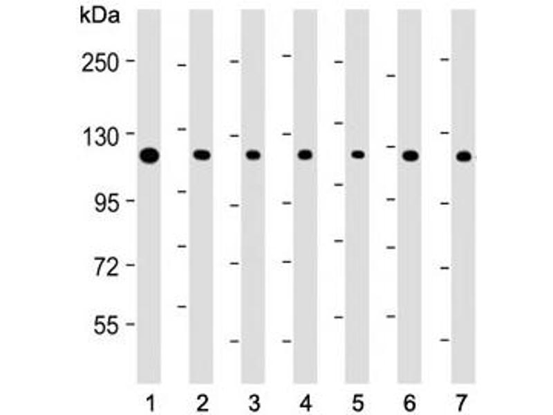 A portion of amino acids 627-656 from the human protein was used as the immunogen for this TERT antibody.