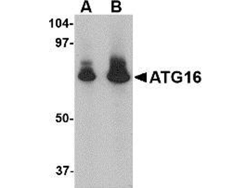 ELISA. Western blot: ATG16 antibody can be used for the detection of ATG16 at 0.5-1 μg/mL. Immunocytochemistry. Positive Control: HeLa Cell Lysate. Other applications not tested. Optimal dilutions are dependent on conditions and should be determined by the user.