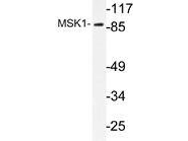 The family of ribosomal S6 kinases (Rsks), designated Rsk-1, Rsk-2 and Rsk-3, have been implicated as important signaling intermediates in response to a broad range of ligand-activated receptor tyrosine kinases. A unique feature common to the three members of the Rsk family is that each possesses two non-identical complete kinase catalytic domains. A related S6 kinase, p70 S6 kinase, functions to phosphorylate the S6 protein on ribosomal 40S subunits. p70 S6 kinase β shares high sequence homology with p70 S6 kinase,except in the carboxy terminus where it contains a proline-rich domain that may be involved in SH3 domain containing protein interactions. MSK1 (also designated RLPK) is related to Rsk and p70 S6 kinase family members and is thought to be structurally similar to Rsk family members, but it may be regulated by distinct mechanisms.Synonyms: 90 kDa ribosomal protein S6 kinase 5, Nuclear mitogen- and stress-activated protein kinase 1, RSK-like protein kinase, RSKL, Ribosomal protein S6 kinase alpha-5