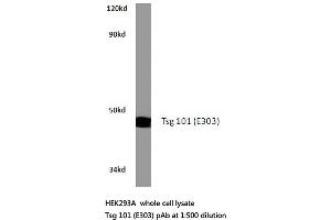 - This antibody detects endogenous levels of Tsg 101 protein. (region surrounding Glu303)