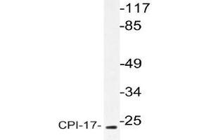 CPI-17 is a phosphorylation-dependent inhibitory protein for smooth muscle myosin phosphate. CPI-17 was originally identified as a 17 kDa PKC-potentiated inhibitory protein of protein phosphatase-1, which is dominantly expressed in smooth muscle. Phosphorylation at Threonine 38, in vitro, by PKC or Rho-kinase enhances the inhibitory potency toward myosin phosphatase. CPI-17 is also phosphorylated at Threonine 38 by protein kinase N and might be involved in the calcium sensitization of smooth muscle contraction as a downstream effector of Rho and/or arachidonic acid. CPI-17 is dually phosphorylated at Serine 12 and Threonine 38 by a MYPT-associated kinase, M110 kinase.Synonyms: 17 kDa PKC-potentiated inhibitory protein of PP1, CPI-17, CPI17, PPP1INL, Protein phosphatase 1 regulatory subunit 14A