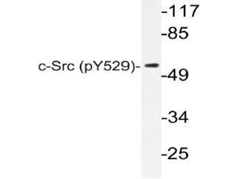 The major translational products of the members of the Src gene family identified to date are membrane-associated tyrosine protein kinases that lack transmembrane and external amino acid sequences, thereby distinguishing this group from the receptor class of tyrosine kinases. Members of this group include c-Src, c-Yes, Fyn, Lck, Lyn, Blk and c-Fgr. The major Src gene encoded protein, pp60Src, is expressed in a broad range of tissue and cell types, although the highest levels of pp60Src are detected in neuronal tissues and platelets. pp60Src may play a role in events associated with both neuronal differentiation and maintenance of mature neuronal cell functions.Synonyms: Proto-oncogene c-Src, Proto-oncogene tyrosine-protein kinase Src, c-Src, pp60c-src