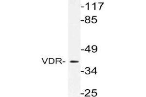 Der Kaninchen Polyklonal anti-Vitamin D Receptor Antikörper (ABIN499023) detektiert spezifisch Vitamin D Receptor in WB und IHC (p).
